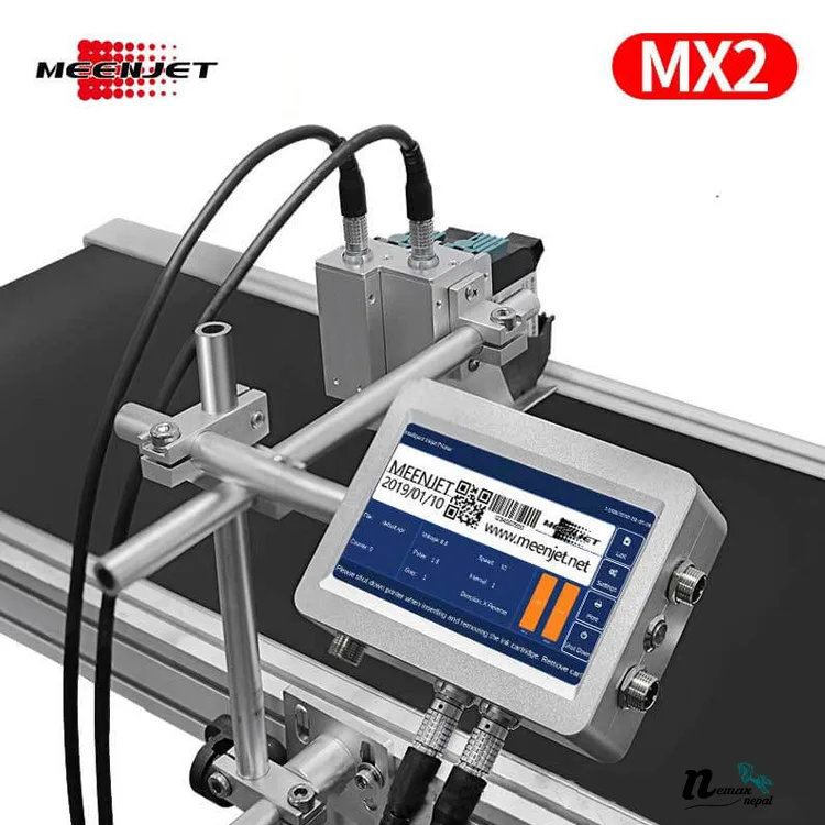 The Meenjet MX2 Printer comes equipped with (2) half-inch printheads and is great for marking colors (black, white, yellow, blue, green and red) on porous, semi-porous and non-porous substrates. Print on glass, plastics, metal, boxes and much more. Print high resolution alphanumeric text, barcodes, logos, static and variable information. The Meenjet MX2 Printer also features built in counters for marking date and time codes, lot codes, batch codes and much more!